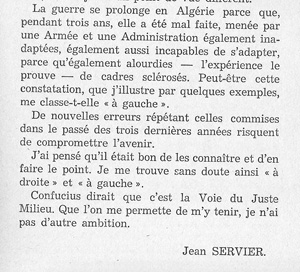 Jean SERVIER, ethnologue, connait bien l’Algérie et ses habitants. Il la re-parcoure pendant les évènements et jette un regard critique sur les erreurs qu’il voit.