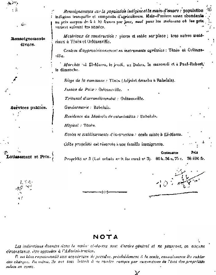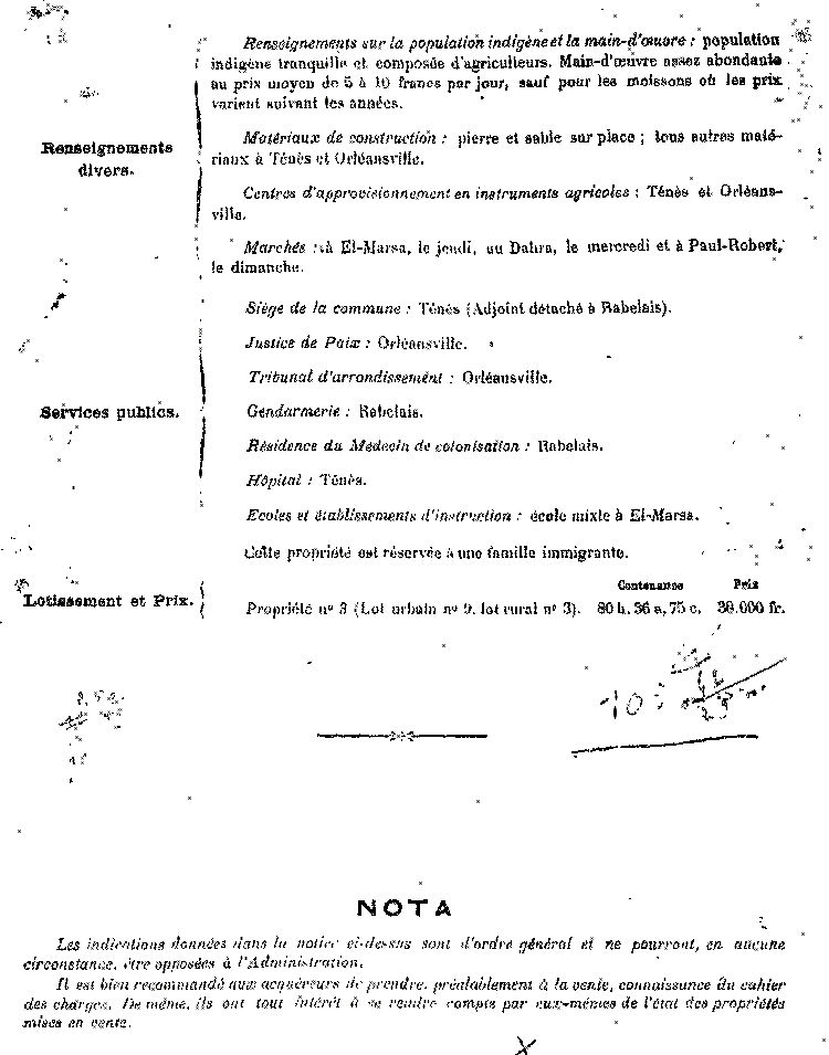 En 1927 une propriété est mise en ventes aux enchères par le Gouvernement Général de l’Algérie