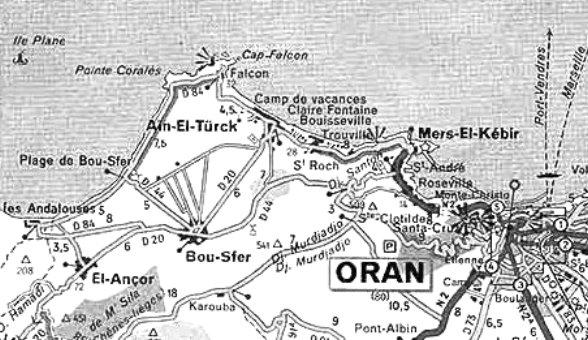 La route se poursuivait vers le village de pêcheurs de Saint-André et le port de Mers-el-Kébir dont le nom restera toujours attaché au drame qui s’y déroula le 3 juillet 1940, où la marine britannique coula une escadre de la flotte française, et qui se solda par 1297 morts. En 1951, des travaux furent entrepris pour transformer Mers-el-Kébir en base stratégique anti-atomique. Au sortir du village, le car s’engageait, poussif, sur la route en lacets, - le fameux "escargot" - qui passait devant l’imposant fort espagnol d’où l’on découvrait un magnifique panorama sur la baie et la ville d’Oran. Ce fort connut dès 1958, des heures de gloire avec les représentations théâtrales de "La Dévotion à la Croix" de Calderon, traduite et adaptée par Albert Camus, des "Perses" d’Eschyle, de "L’Espagnol courageux" de Cervantès, des "Don Juan" de Molière et de Mozart. C’est dans ce fort que fut aussi donné en juin 1959 un Son et Lumière réalisé par le spécialiste du genre, Paul-Robert Houdin.